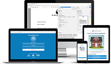 With your Official ESA™ approval from a licensed doctor in your state, you’ll have the security knowing you can take your pet with you everywhere you go and never have to leave them behind. You’ll eliminate pet restrictions and regulations by having federal HUD law on your side so you can live in any houses, condos, and apartments without any pet deposits or extra fees! Have the freedom to take your furry friend with you to restaurants, stores, on rideshare services, and bring them when you travel. You'll find businesses are happy to welcome well-behaved Official ESA™ approved pets. Click to order now!